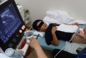 関節に水が溜まっているのがよく見える、エコー検査が診断の役に立ちます。