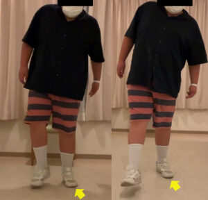 左はいわゆるガニマタ、つま先を外に向けて歩いています。
