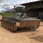 また、休日にはミンスクから離れ、ベラルーシの世界遺産であるミール地方の城と建造物群(写真10)や、街から150km以上離れた湖畔へ教授の家族旅行に泊まりがけで同伴させてもらったり(写真11)、さらにはライフル射撃や戦車に乗せてもらったりと、日本では経験出来ないようなことを数多く経験させてもらいました(写真12・13)。
